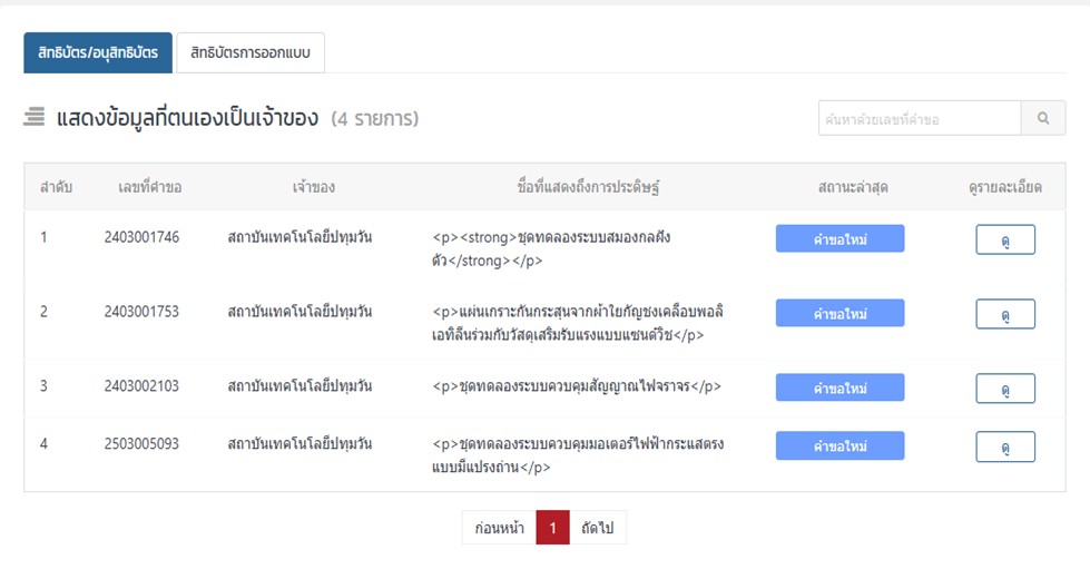 ผลการดำเนินงานการยื่นขอจดทะเบียนทรัพย์สินทางปัญญาของสถาบันเทคโนโลยีปทุมวัน